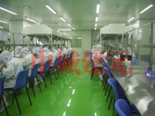 1.凈化廠房墻、頂板材一般多采用50mm厚的夾芯彩鋼板制造,其特點(diǎn)為美觀、剛性強(qiáng)。圓弧墻角、門、窗框等一般采用專用氧化鋁型材制造。